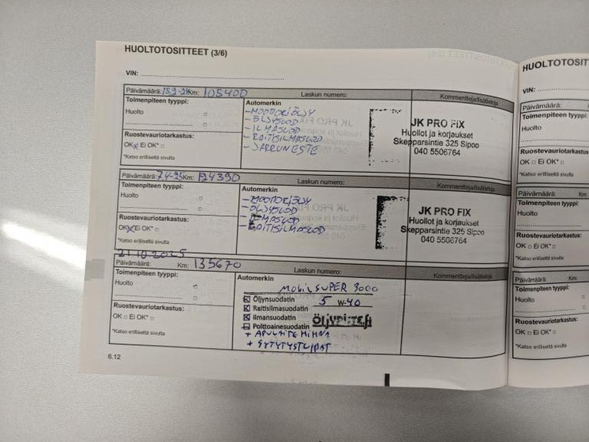 - Viimeisin huolto tehty 21.10.2025