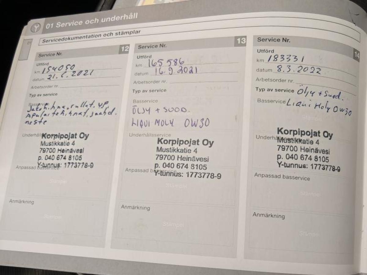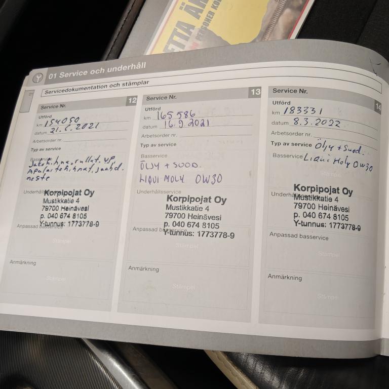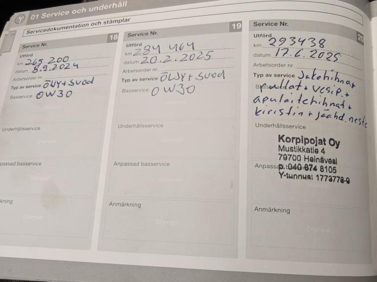 - Viimeinen huolto tehty 1.9.2025 299649km.