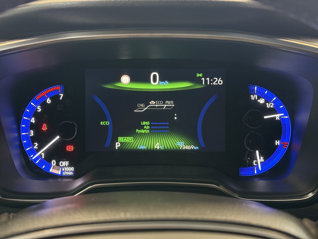 Peruutuskamera opastinviivoin mediakeskuksen näytöllä,Ajonvakautus (VSC+), luistonesto (TRC) ja hätäjarrutehostin (BA),Automaattinen ilmastointilaite kuljettajan ja etumatkustajan erillisillä lämpötilan säädöillä,60/40 suhteessa taitettava takaistuimet,Comfort -etuistuimet,Etumatkustajan istuimen korkeudensäätö,Keskikyynärnoja takana,Kuljettajan istuimen korkeussäätö,Kuljettajan istuin sähköisesti säädettävällä ristiseläntuella,Kuljettajan ja etumatkustajan niskavammoja torjuva istuinrakenne,Lehtitasku etumatkustajan istuimen selkänojassa,Pääntuet takana 3 kpl,Älykäs mukautuva vakionopeussäädin (DRCC), koko nopeusalue,Ajotietokoneen ja räätälöityjen ominaisuuksien käyttö Toyota Touch 2 kosketusnäytöltä,Sähkötoimiset ikkunannostimet kiilautumisenestolla edessä ja takana,Tuulilasinpesunesteen alhaisen määrän varoitin,UV-säteilyä vähentävä tuulilasi ja ikkunat,Ikkunaturvatyynyt: edessä ja takana,Etumatkustajan turvatyynyn poiskytkentä,Kuljettajan ja etumatkustajan etuturvatyynyt,Kuljettajan ja matkustajan sivuturvatyynyt,Kuljettajan polviturvatyyny,Levyjarrut edessä ja takana,Lukkiutumattomat jarrut (ABS),Mäkilähtöavustin (HAC),Sähkötoiminen käsijarru, jalkaa lepuuttavalla hold-toiminnolla,Ajotilan valintapainikkeet Eco/Normal/Sport,Aktiivinen kaistanseuranta (LTA) automaattivaihteisissa malleissa,Mittariston värillinen 7" TFT-monitoiminäyttö,Toyota Connected-palvelut (palvelut voivat vaihdella mallin ja varustetason mukaan),Haineväantenni,USB-pistoke edessä,6 kaiutinta,Audiojärjestelmän säätimet ohjauspyörässä,Toyota Touch 2 -mediakeskus