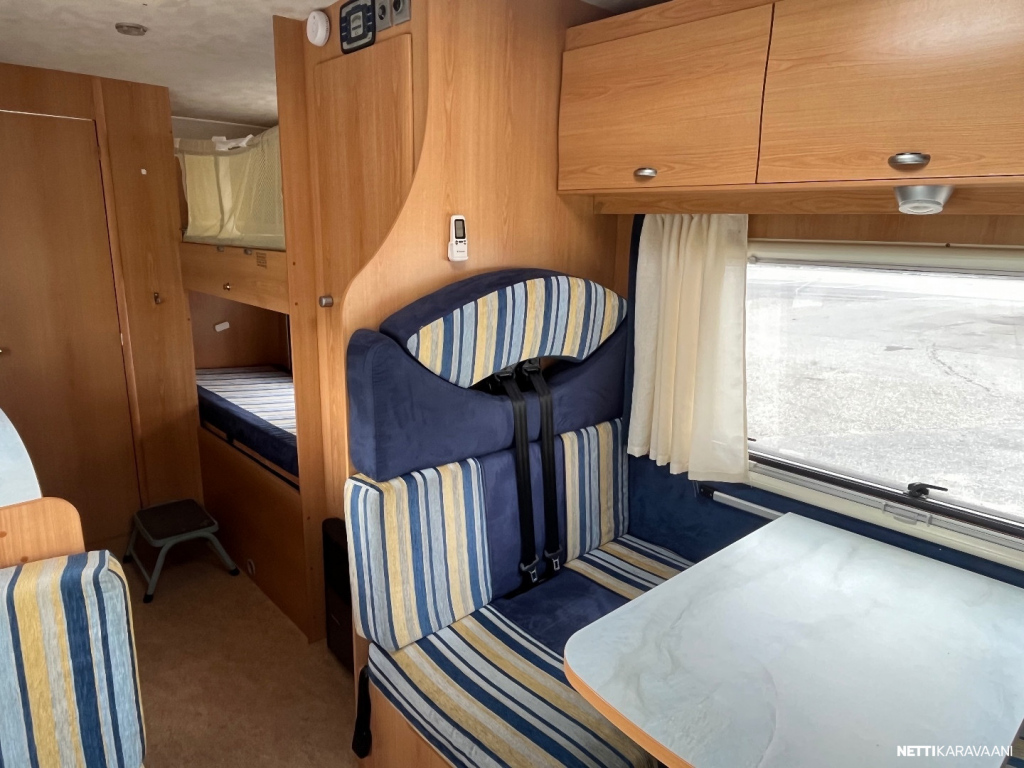 Ajotietokone, Ilmastointi ajotilassa, Ilmastointi: Manuaalinen, Jääkaappi, Kasetti WC, Kasettiverhot, Kerrossänky, Keskuslukitus: Kaukosäätöinen, Liesi, Lämminvesiboileri, Ohjaustehostin, Pakastelokero, Parivuode, Pesuallas, Pysäköintikamera, Stereot, Suihku, Sähkökäyttöiset ikkunat, Sähköpeilit, TV-antenni tai lautasantenni