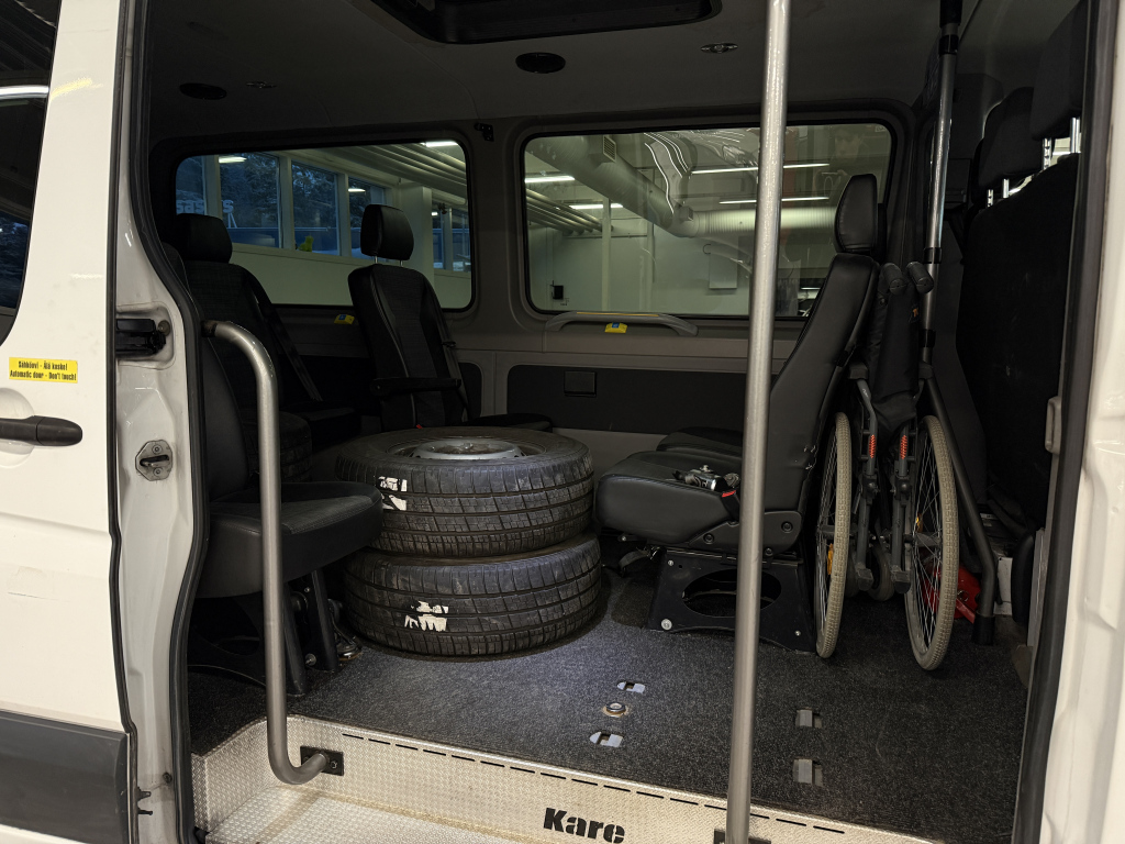 Huolto-ohjelman mukaan huollettu 9-henkilön esteetön Sprinter.